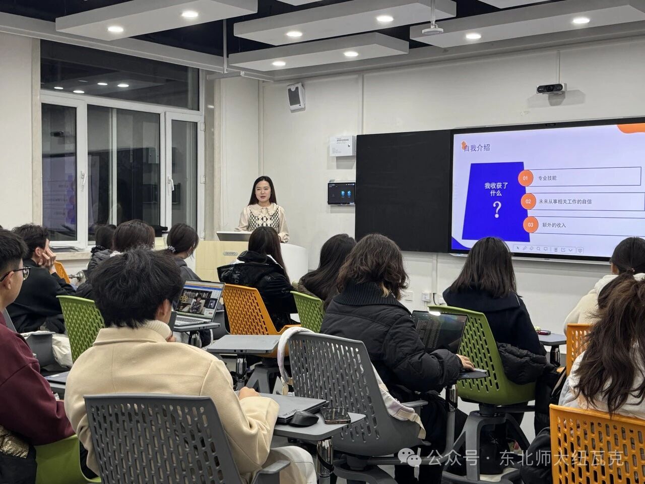 随后,孙老师将重点转向了Excel数据分析与图表制作、PPT设计。他深入讲解Excel基础操作及复杂数据分析、图表制作及PPT制作技巧, 为了提升学生干部工作效率,加强实践能力打下坚实的基础。